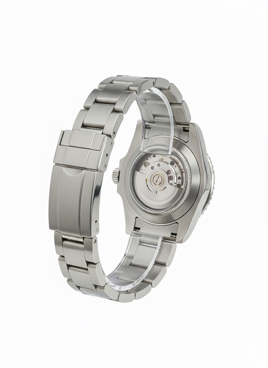 The E616 in black fuses classic dive watch design with timeless elegance. Its deep black dial and polished diving bezel are framed by a robust stainless steel case, creating an imposing yet functional presence. It is the perfect timepiece, not only for the ocean depths, but also for daily life.